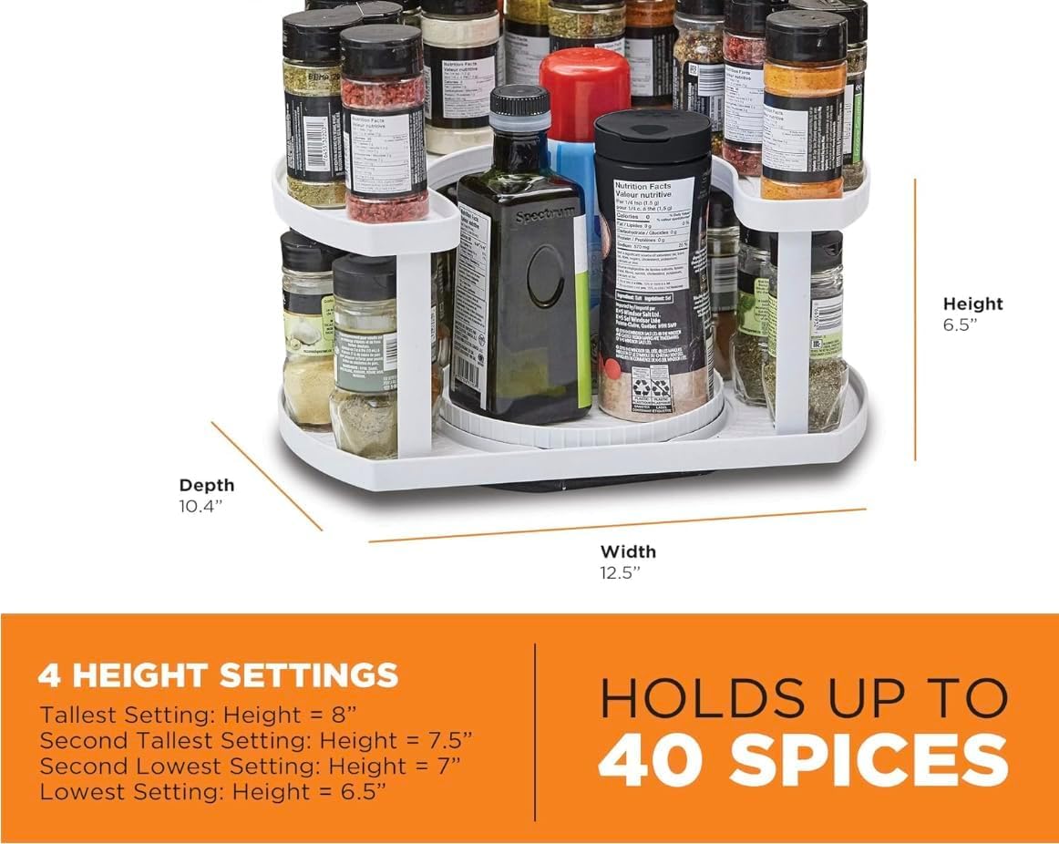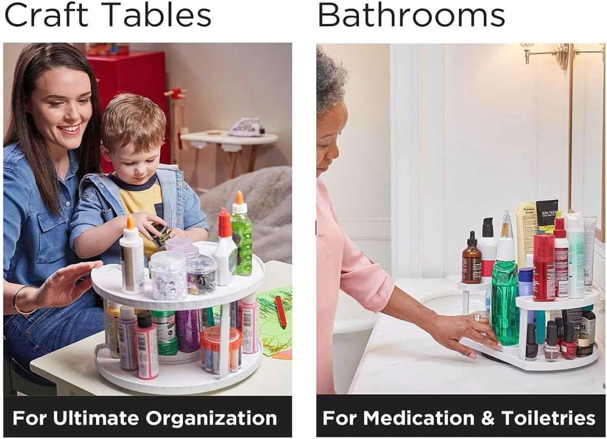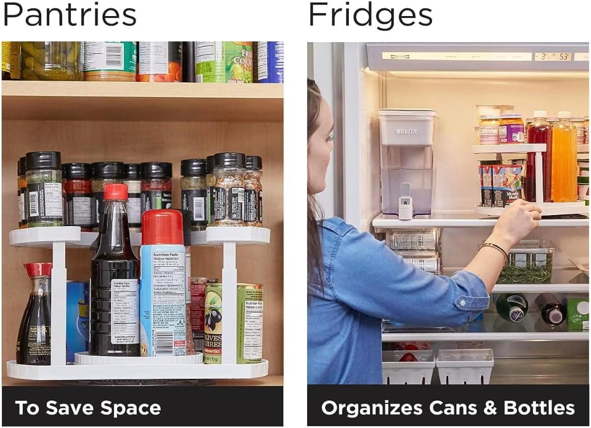 Mantén todo en orden y al alcance con este organizador giratorio tipo Lazy Susan. Su diseño de doble nivel y gran capacidad lo hace ideal para la cocina, el baño, el área de limpieza o incluso el tocador.